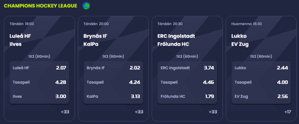CHL:ssä aloitetaan tänään pudotuspelit ja mainiosti mukana on kolme suomalaisjoukkuetta. CHL:n pudotuspelit käyntiin viiden...
